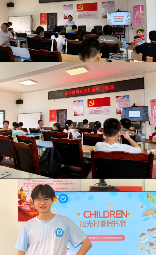 中午短暂休整后,14点30分,团队成员来到幼儿托管点,为孩子们开展作业辅导、书籍分享会等活动。在作业辅导过程中,队员们耐心细致地为孩子们解答疑问,进行知识补充和书目介绍。此外,还与孩子们一起进行帆布包绘画、手工制作等趣味活动,通过破冰行动拉近与孩子们的距离,在欢声笑语中陪伴孩子们度过了愉快的时光。
