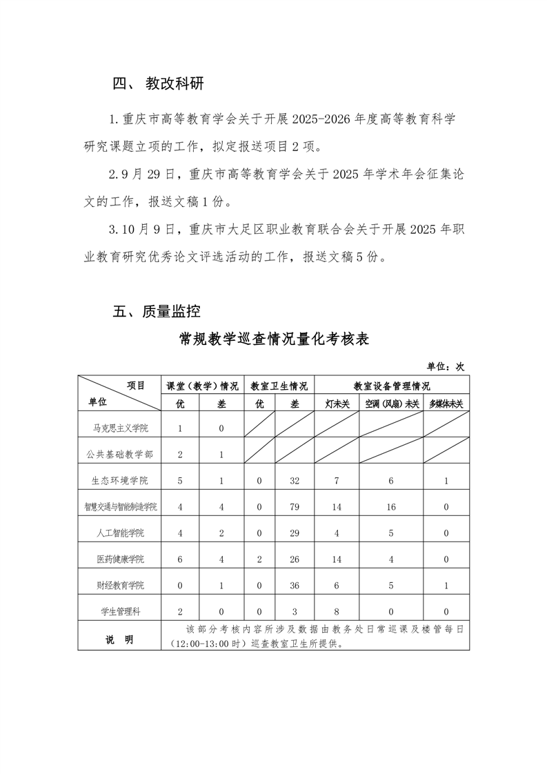 2025-2026学年第一学期重庆资源与环境保护职业学院教学简报第二期