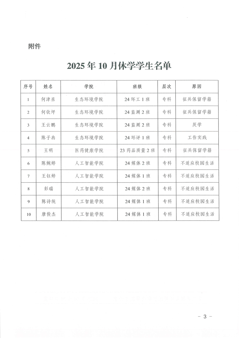 何津丞等10名同学休学