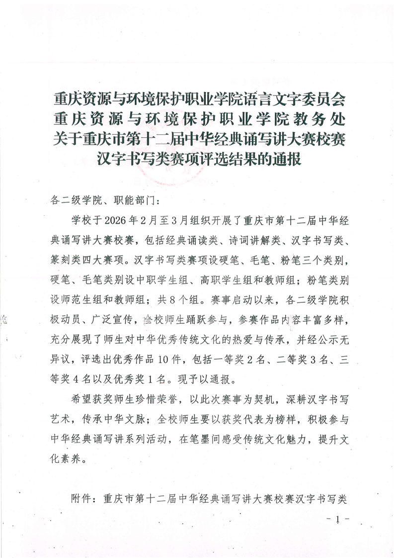 关于重庆市第十二届中华经典诵写讲大赛校赛汉字书写类赛项评选结果的通报