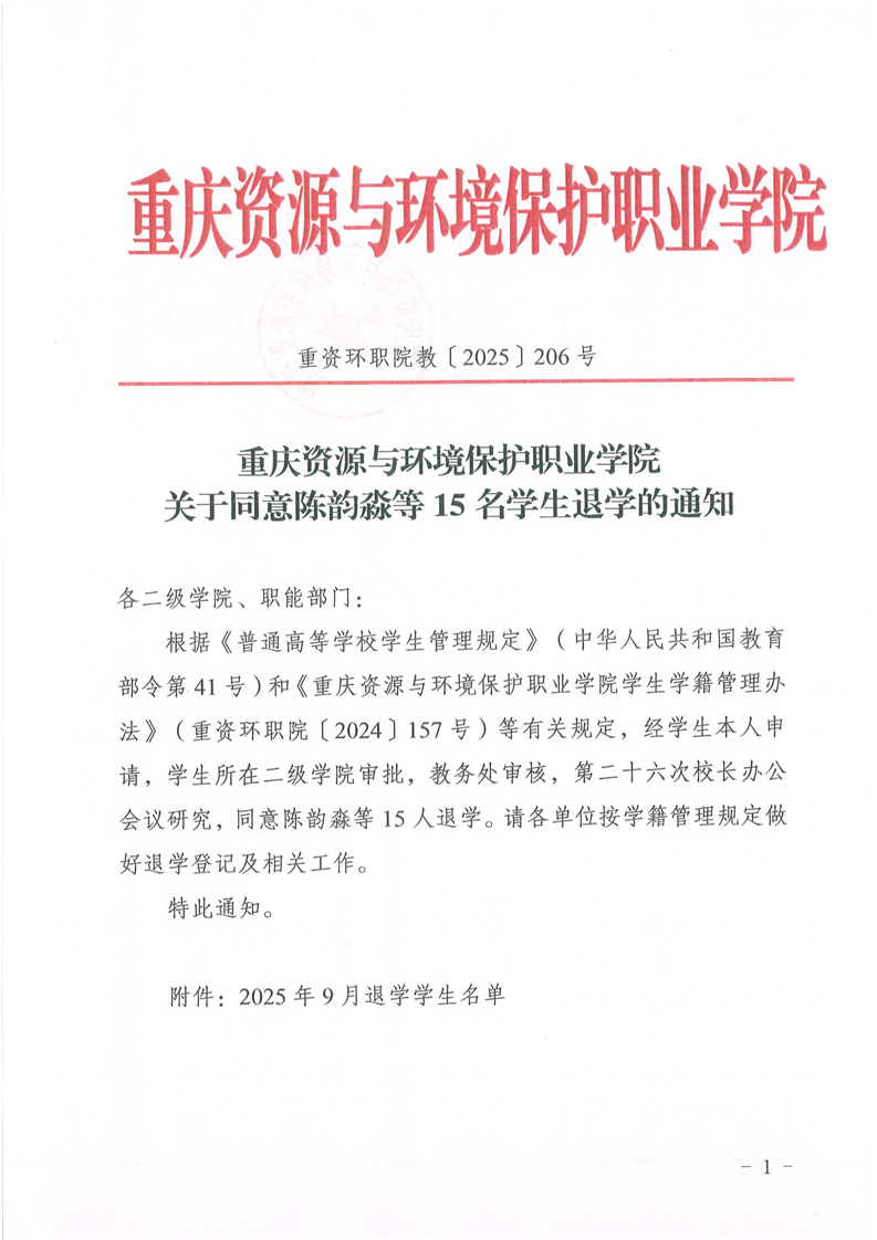 查看详情关于同意陈韵淼等15名学生退学的通知