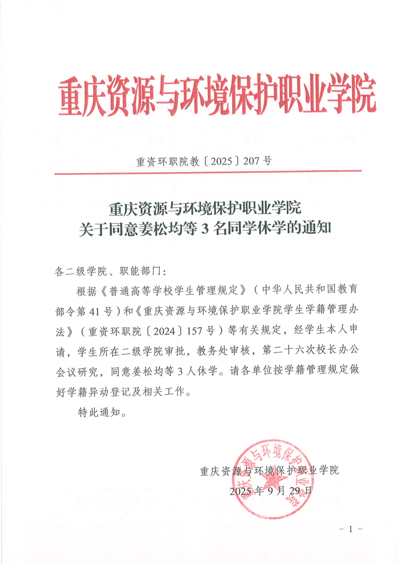 查看详情关于同意姜松均等3名同学休学的通知