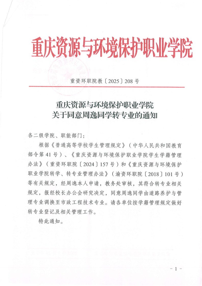 查看详情关于同意周逸同学转专业的通知
