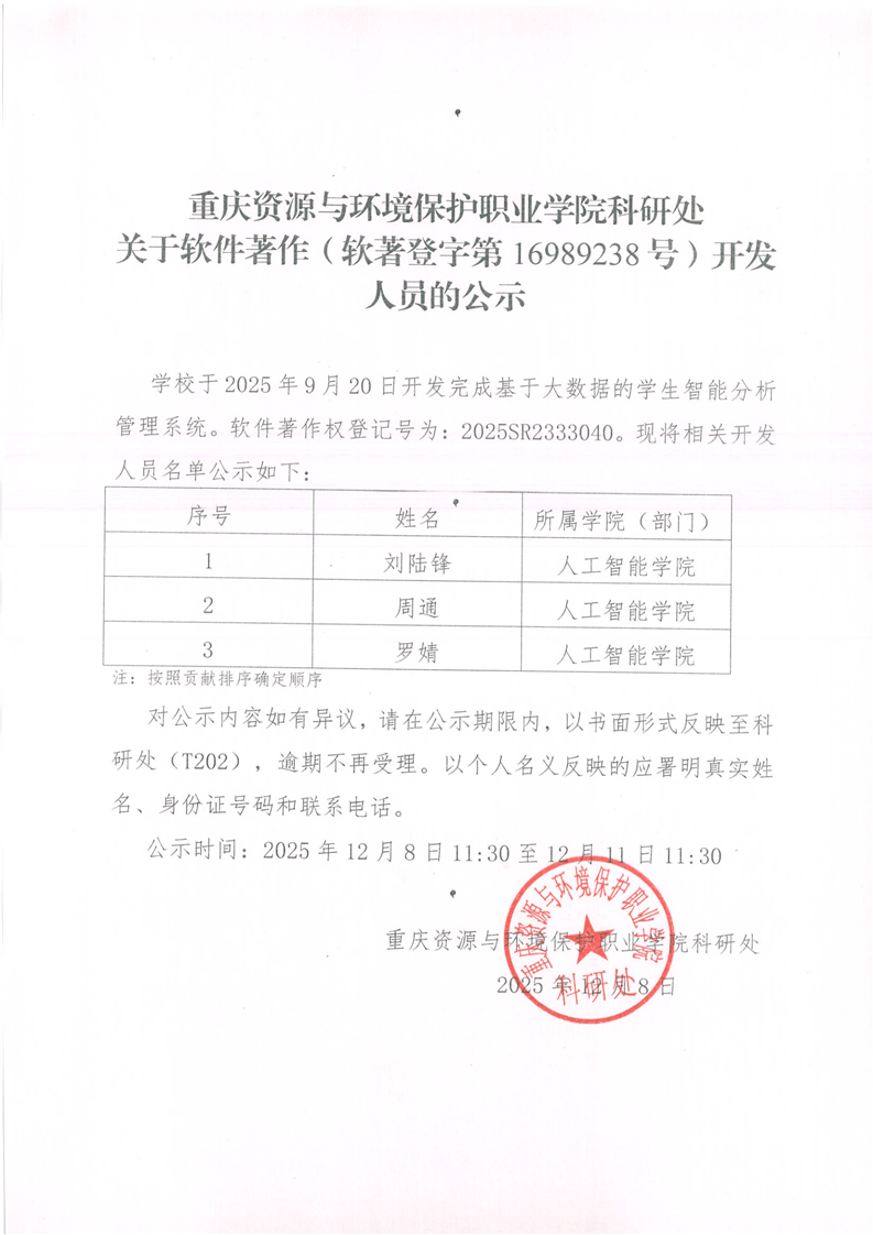 下一篇:公示|关于软件著作(软著登字第16989089号)开发人员的公示