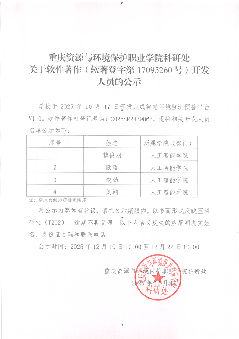 公示|关于软件著作(软著登字第17095260号)开发人员的公示