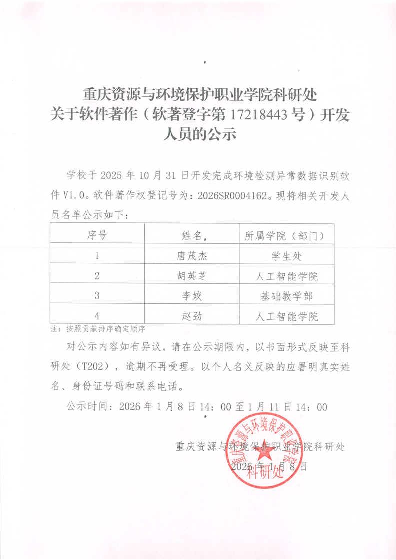 上一篇:公示|关于软件著作(软著登字第17218440号)开发人员的公示