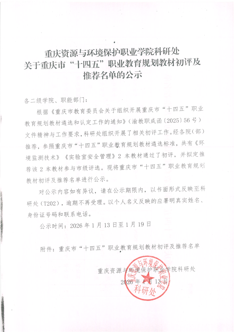 公示|关于重庆市“十四五”职业教育规划教材初评及推荐名单的公示