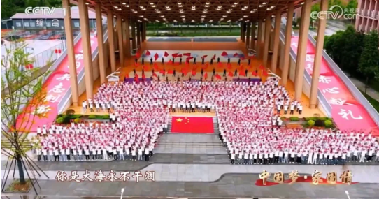 在央视综合频道(CCTV-1)10月1日晚播出的《中国梦·家国情——2025国庆特别节目》中,资环学子们身着统一的白色T恤,手中挥舞着鲜艳的五星红旗,在绿意盎然的校园广场上组成了一幅壮丽的"中国心"图案,与来自全国各地的群众代表共同演绎了经典歌曲《我和我的祖国》《我爱你中国》。