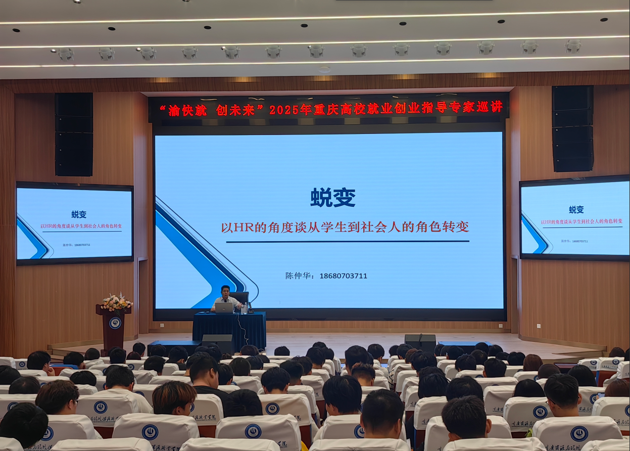 为助力学子明晰职业路径、提升就业创业能力,响应重庆市学生就业与创新创业服务中心巡讲号召,9月23日与25日,“渝快就 创未来”2025年重庆高校就业创业指导专家巡讲活动在我校学术报告厅接连举办。重庆市教委高校毕业生就业创业专家库成员陈仲华、重庆师范大学创新创业指导教师逯璐先后登台授课,全校400余名师生到场聆听。