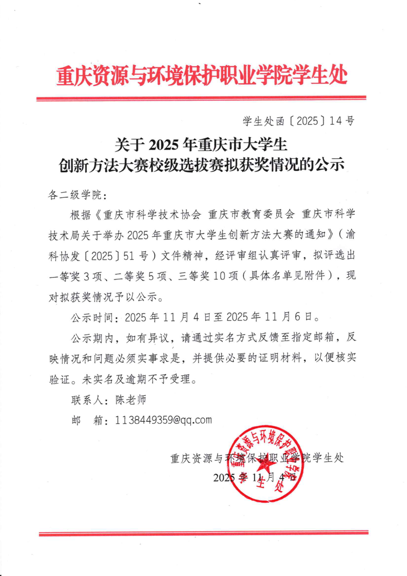 下一篇:关于拟推荐参加2025年重庆市大学生创新方法大赛的公示