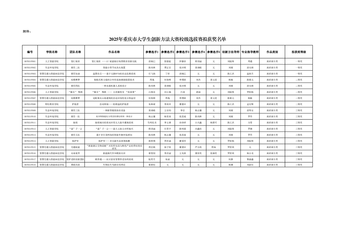 关于2025年重庆市大学生创新方法大赛校级选拔赛拟获奖情况的公示