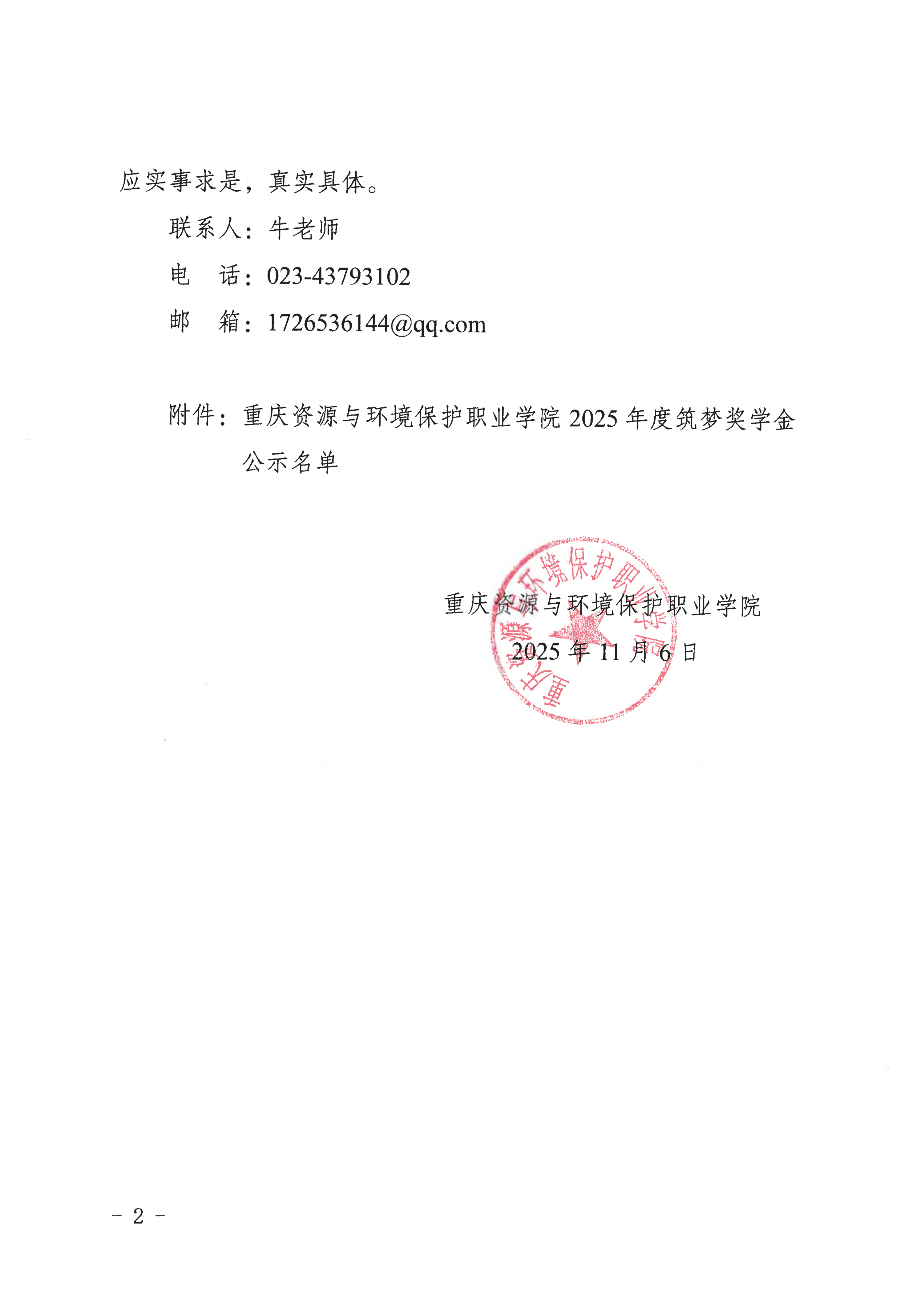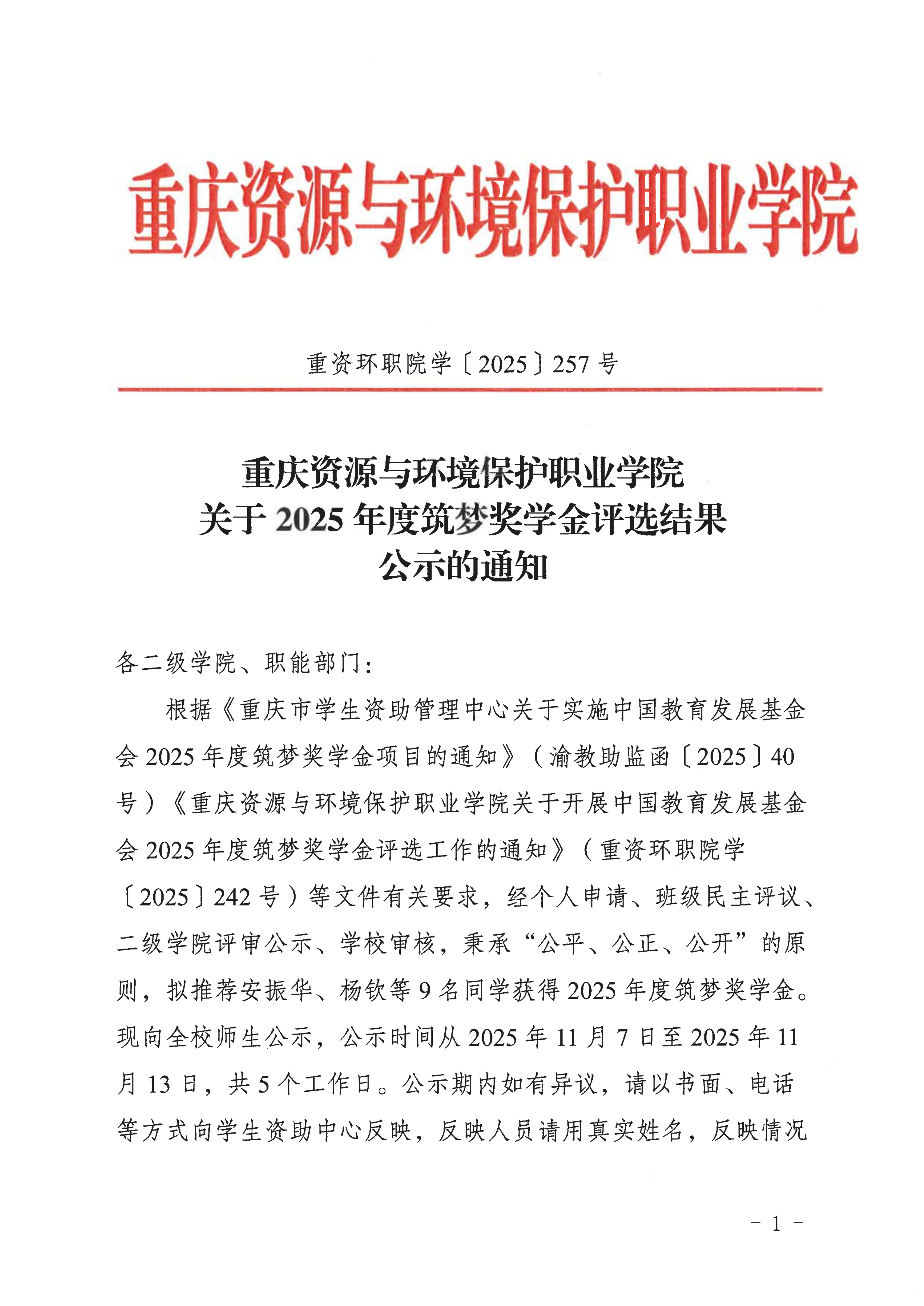 关于2025年度筑梦奖学金评选结果 公示的通知