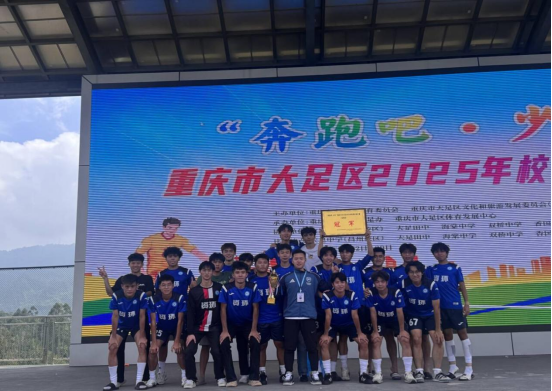 近日,大足区2025年校园足球联赛圆满收官。我院专任教师李博睿带领校足球队出征,凭借扎实的战术素养、顽强的拼搏精神,在多支参赛劲旅的激烈角逐中脱颖而出。