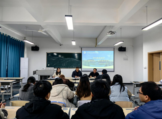 为确保 2026届学生岗位实习工作规范、有序、高质量推进,进一步明确指导教师职责,提升实习指导的专业性与针对性,2025年11月13日中午1点,财经教育学院在XS509教室正式召开2026届岗位实习指导教师说明会。院长徐春桥、学院党支部副书记包万洪、副院长谢元亭、教学秘书陈雪,以及全体岗位实习指导老师、毕业生辅导员参加会议。