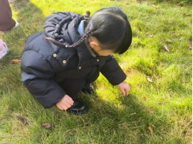 活动伊始,志愿者们便融入孩子们中间,引导他们步入户外的自然课堂。在洒满阳光的草坪上,孩子们在志愿者的鼓励下,兴致勃勃地俯身探寻,小心翼翼地拾起一片片形态各异、色彩斑斓的落叶。这些来自大自然的馈赠,在孩子们稚嫩的小手中,被赋予了特殊的意义——它们不仅是季节变换的见证,更被珍藏为毕业之际独一无二的记忆书签。志愿者们耐心讲解树叶的脉络与故事,在轻松愉快的氛围中,悄然播撒了探索自然、热爱生活的小小种子。