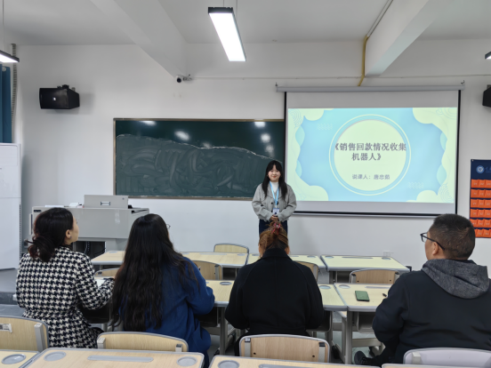 比赛现场,来自不同教研室的两位优秀教师先后登台,进行了精彩的说课展示。会计金融教研室的唐忠茹老师首先登场,她围绕课程定位、学情分析、教学目标、教学方法与教学过程设计等方面,对所选课程进行了系统梳理和深入阐述。其说课逻辑严谨、内容充实,充分展现了扎实的专业功底和清晰的教学思路。