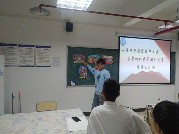 “赏经典,温党史”。马克思主义学院和教育与体育学院联合开展的《美术的红色基因》优秀作品交流会于2021年3月25日在T505室举行。马克思主义学院党支部书记何雨灿同志、思想政治理论课教研室副主任秦专松老师、教育和体育学院环艺教研室主任李中亚老师以及部分2020级学前教育专业学生参加了这次交流会。思想政治理论课教研室副主任秦专松主持此次交流会。