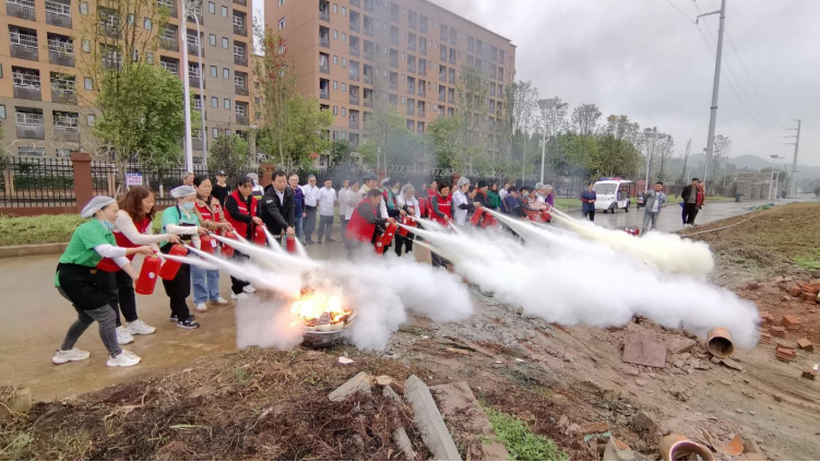 实操演练环节将培训推向高潮。在指定演练区域,模拟油盆火依次点燃,参训人员分组上阵,在杨静老师的现场指导下实操灭火。“提灭火器时要稳,拔掉保险销后握紧喷嘴,距离火源2-3米再按压!”杨老师逐一对操作动作进行纠正,确保每位参训人员都能规范掌握灭火技巧。从最初的略显生疏到后来的熟练操作,大家认真体验每一个步骤,切实突破了“不敢用、不会用”的技能瓶颈。食堂张师傅表示:“平时总看到灭火器,但真不知道怎么用,今天亲手操作后心里有底了,以后遇到突发情况也能从容应对。”