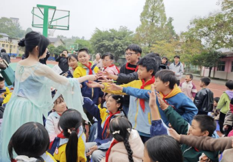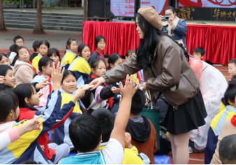 演出过程中,志愿者们以饱满的热情投入表演,古筝《繁花》的婉转旋律、武术的飒爽英姿,赢得现场师生与居民的阵阵掌声。演出结束后,志愿者们还与孩子们亲切互动,开展游戏、分发文具与书籍,并分享大学生活的点滴。孩子们围绕在志愿者身边,眼中闪烁着对未来的憧憬与向往。