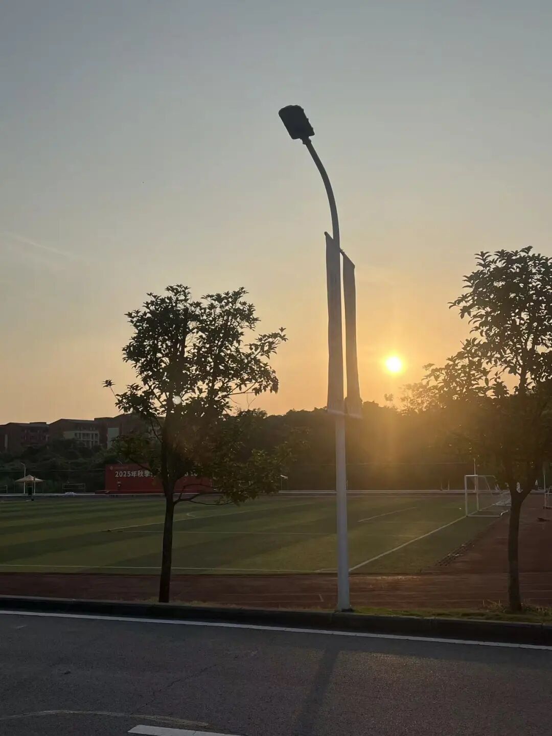 没有预告,不搞彩排,一到傍晚就准时上线营业——金闪闪的阳光泼满教学楼,橘粉色晚霞铺满整片天空。连风都跟着变软,走在校园里像闯进了动漫现场。