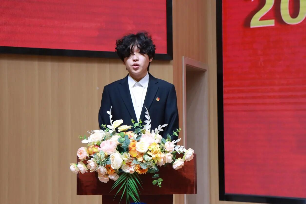 第五届校学生会执行主席张霖睿进行工作汇报。他期许:未来,学生会成员要牢记以服务为初心,做贴近同学的支持者;以协作为途径,组“1+1>2” 的新团队;以创新为引擎,建焕发活力的新活动;使学生会成为同学们真正看得见、信得过、靠得住的服务型组织。