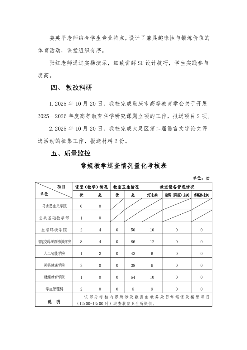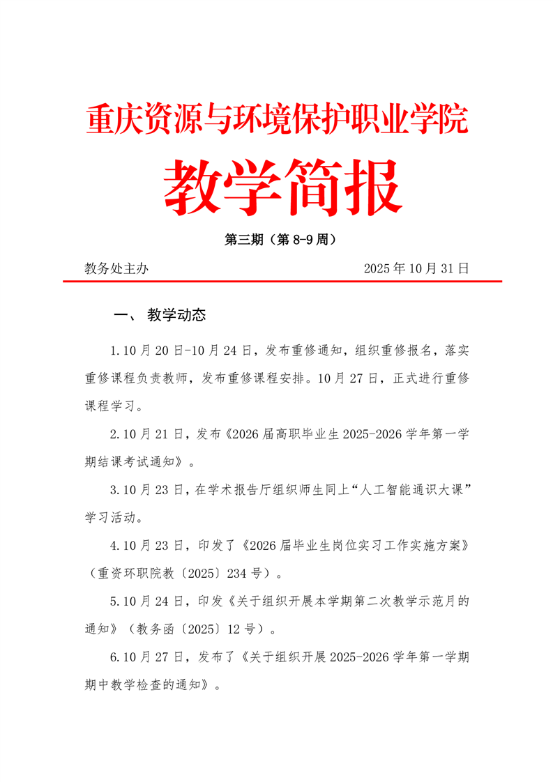2025-2026学年第一学期重庆资源与环境保护职业学院教学简报第三期