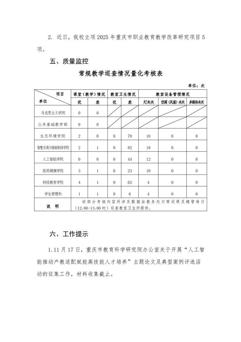 2025-2026学年第一学期重庆资源与环境保护职业学院教学简报第四期