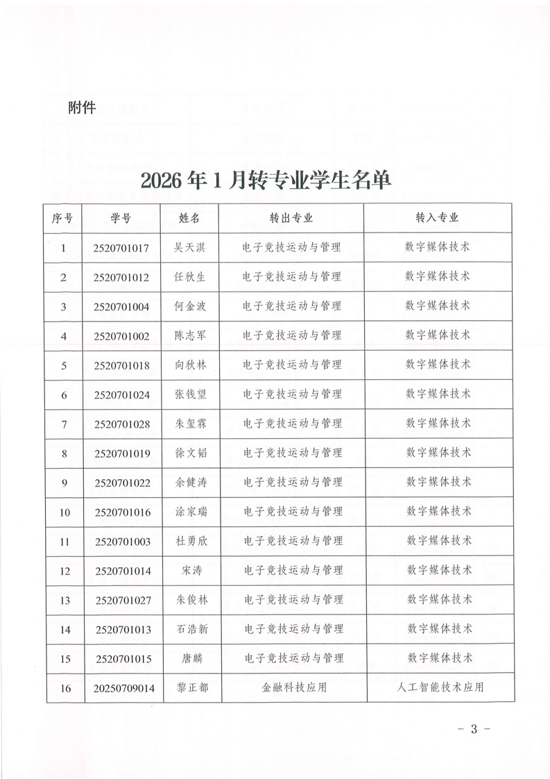 关于同意吴天淇等138名同学转专业的通知