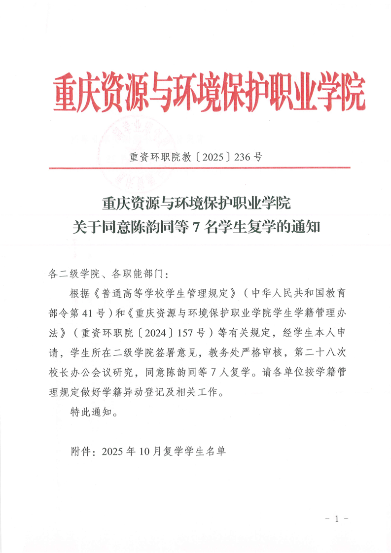 查看详情关于同意陈韵同等7名学生复学的通知