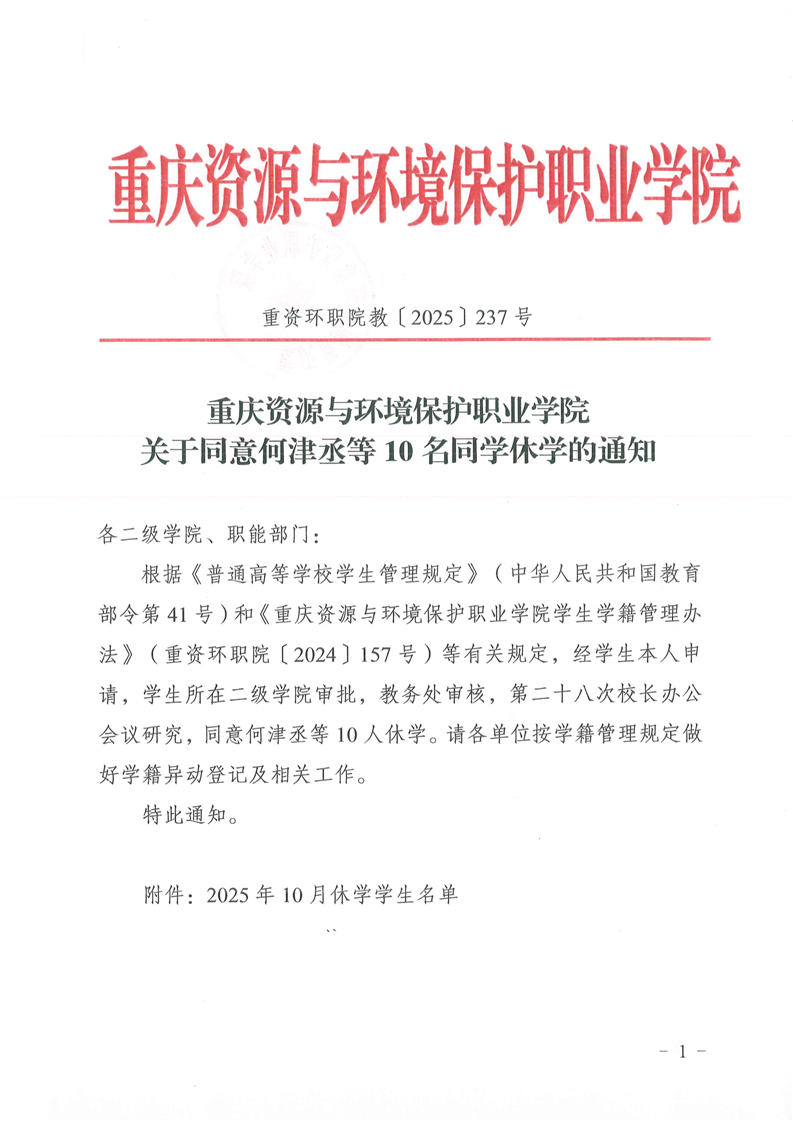 查看详情关于同意何津丞等10名同学休学的通知
