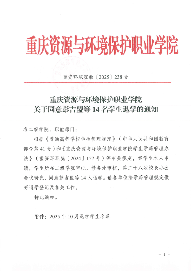 查看详情关于同意彭吉盟等14名学生退学的通知