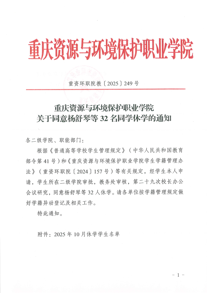 查看详情关于同意杨舒琴等32名同学休学的通知