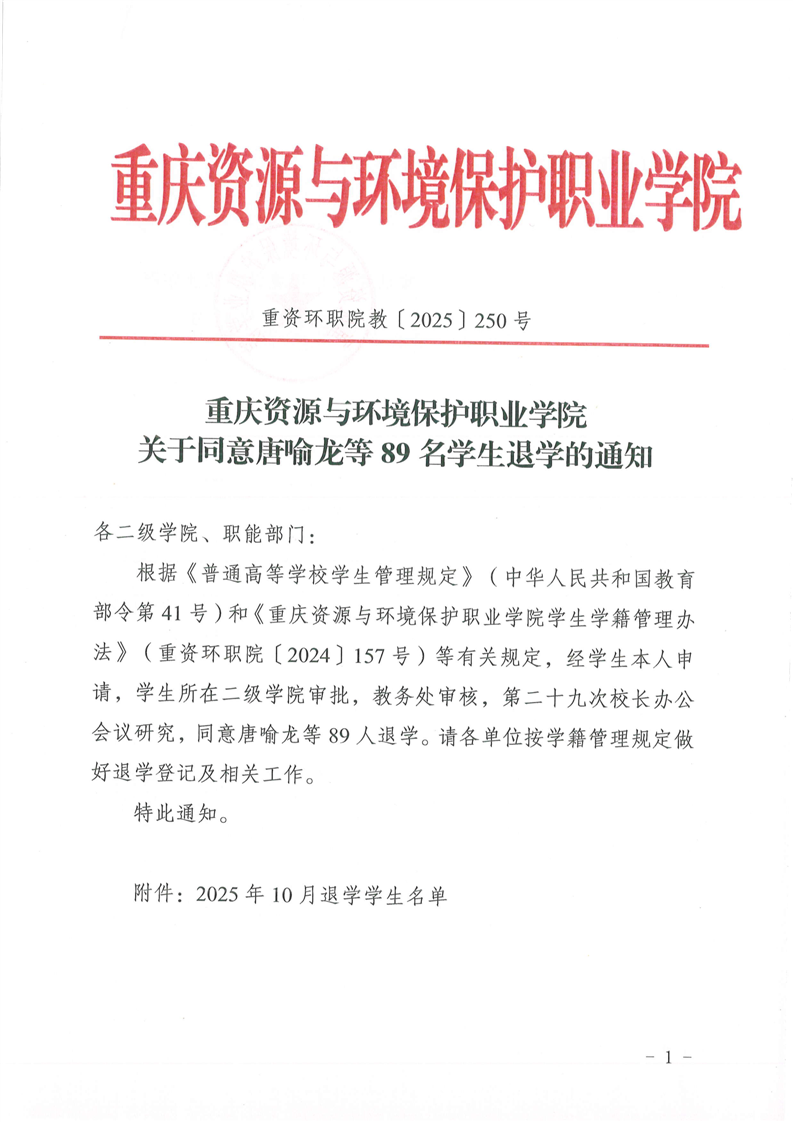 查看详情关于同意唐喻龙等89名学生退学的通知