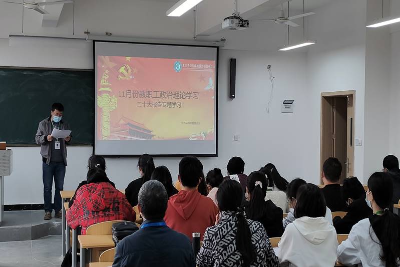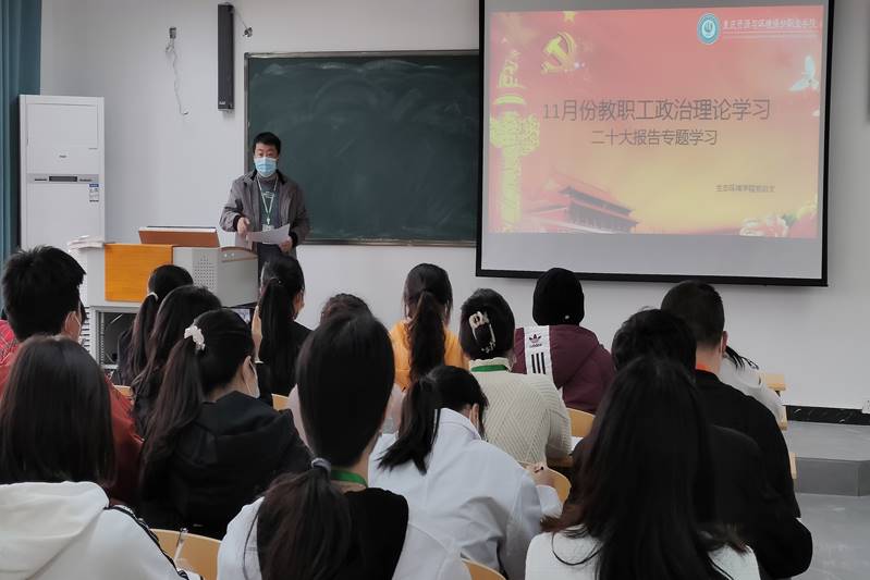 为了深入学习宣传贯彻党的二十大精神,11月18日生态环境学院党总支在XJ314召开11月份“党的二十大”全体教职工大会,会上由党总支副书记周通以《党的二十大新观点、新论断、新思想》为题向全体教职工做宣讲报告。