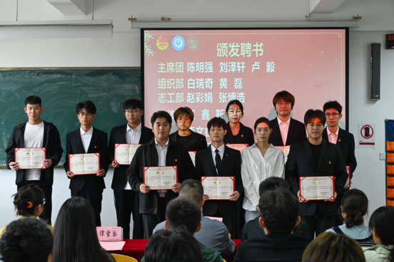 会上,生态环境学院副院长赵智斌宣读表彰决定,授予张晨阳等10名同学“优秀学生干事”称号,谌圣涛等6名同学“优秀社员”称号,陈建豪等5名同学“优秀志愿者”称号表彰,其过去一年在学院学生工作中的突出贡献。同时,大会任命卢毅、刘泽轩、陈明强3人为学生会主席团成员,全面统筹学院学生会工作;白瑞奇、赵彩娟等同学担任部长,将围绕环保主题宣传、文体赛事、志愿活动等内容开展工作。