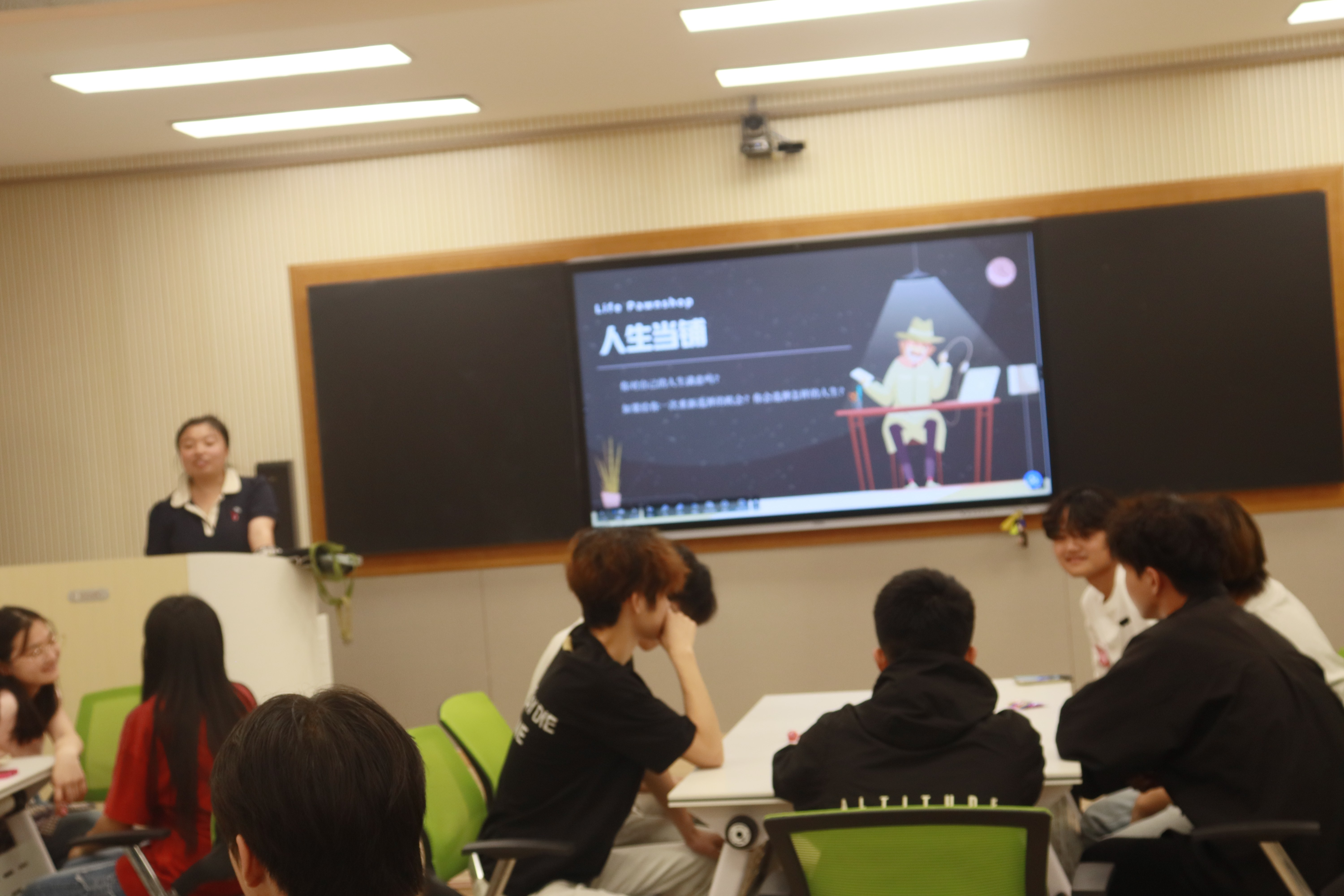 压轴的“价值观典当行”将活动推向高潮。每位同学手持代表“健康”“亲情”“财富”“自由”等10张“人生筹码”,置身虚拟情境,面临一次次典当抉择:“为获得名校offer,你愿意典当什么?”“突发重病,你会用哪个筹码换取康复?”随着筹码逐渐减少,现场出现了各种不同选择。有的同学紧攥“亲情”卡牌迟迟不愿交出,也有人为“自由”放弃其他选项。最终,大家写下最后保留的三张筹码,并分享抉择背后的故事。一名参与者表示:“直到被迫舍弃时,我才明白,一直视为理所当然的‘家人陪伴’,竟是我生命的底色。”这场沉浸式体验,让抽象的价值排序转化为具象的情感触动。
