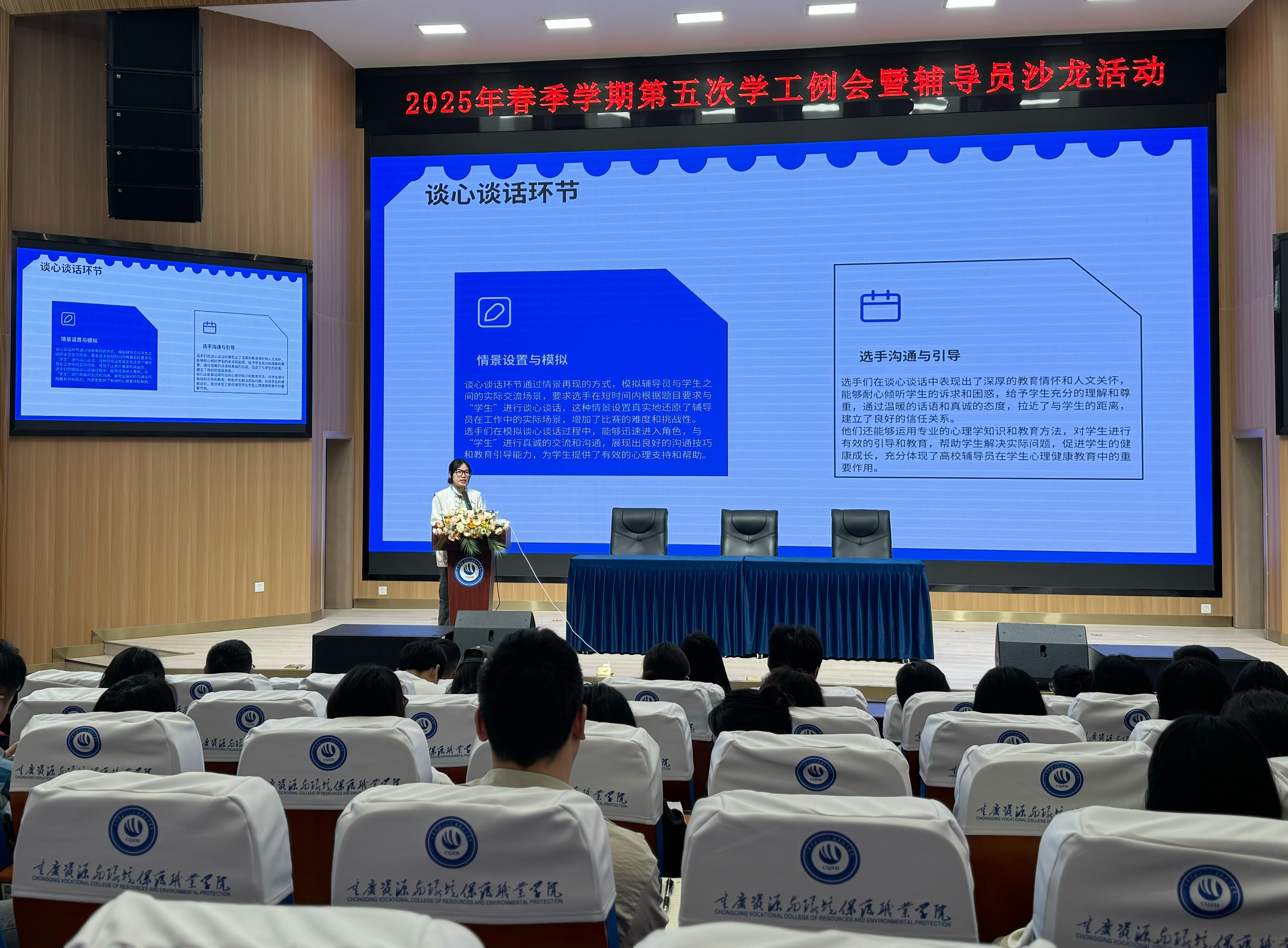 4月15日下午,重庆资源与环境保护职业学院在学术报告厅成功举办2025年第三期辅导员沙龙活动。此次沙龙聚焦辅导员素质能力大赛,我校生态环境学院辅导员罗阳杨、医药健康学院辅导员胡亭分别分享观赛体会和参赛经验。党委副书记、副校长郜发磊出席活动,学生处全体成员、各二级学院党总支书记及辅导员参加活动。