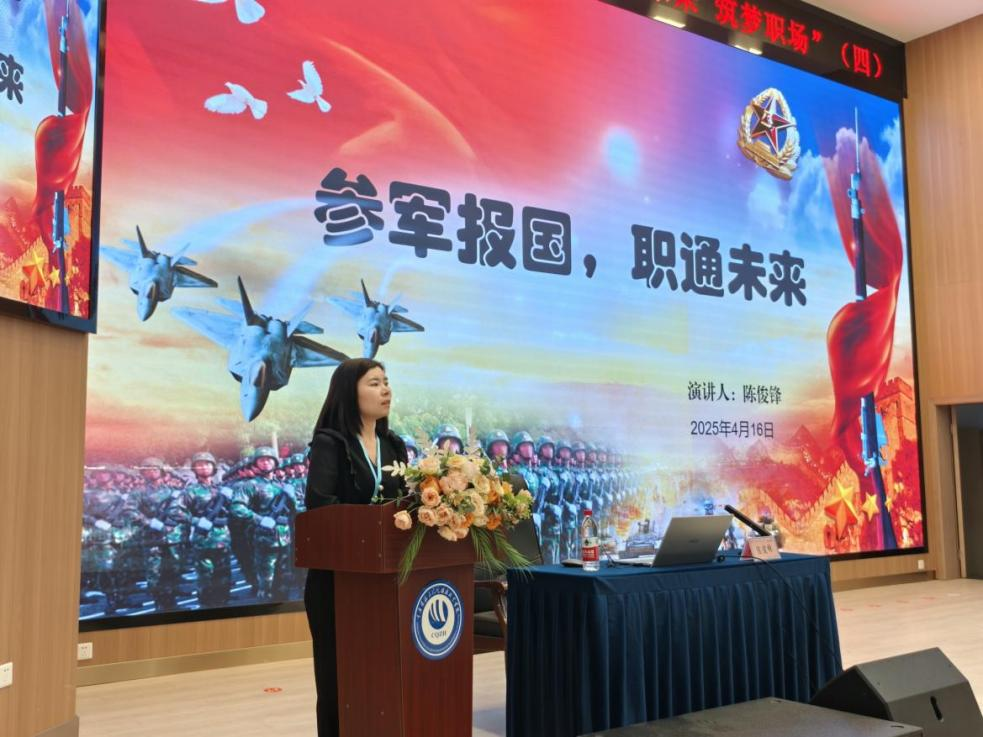 讲座由工作室成员陈俊锋老师主讲。陈老师主要从参军入伍与高质量就业的关联角度出发,深入剖析了当前高职学生参军入伍所带来的五大就业优势,包括政策扶持、技能提升、职业素养的培育、人脉资源的拓展以及退役后享有的优先就业机会等方面。