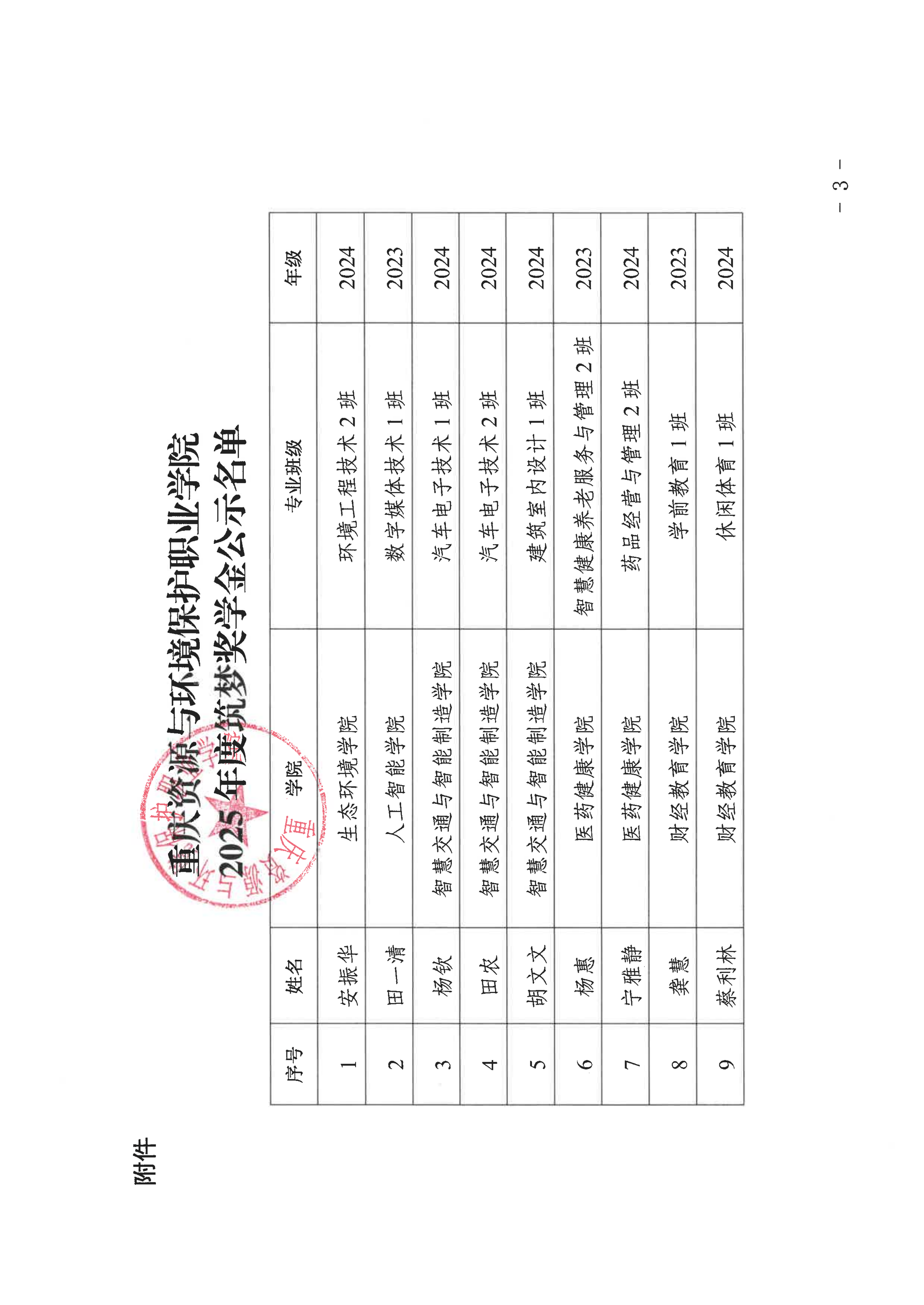 上一篇:重资环职院〔2025〕219号关于2024-2025学年高职学生国家奖学金、国家励志奖学金及2025-2026学年国家助学金评选结果公示的通知