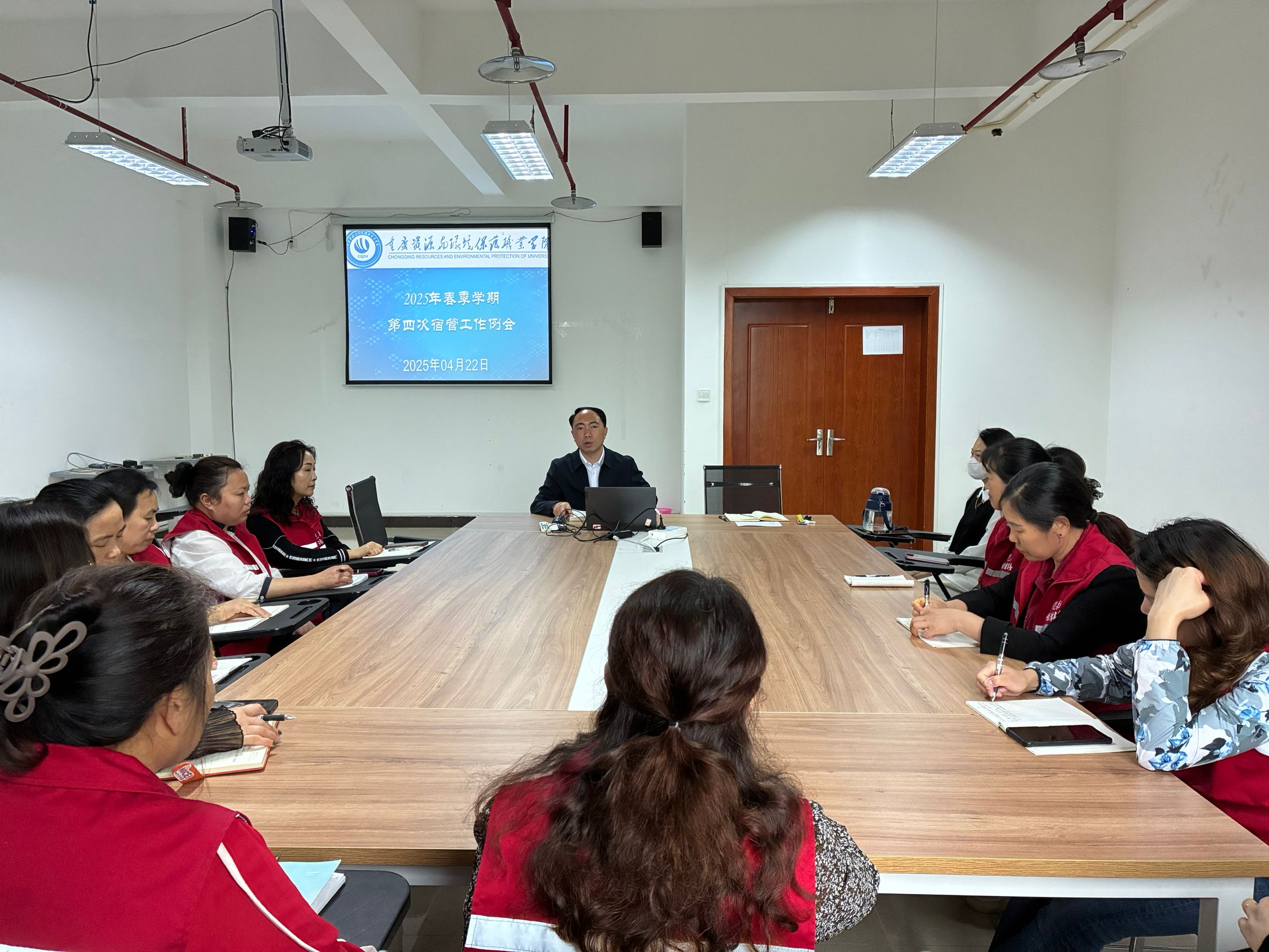 为进一步优化学生公寓管理工作,提升服务育人水平,4月22日上午,学生处在办公楼二会议室召开了2025年春季学期“一站式”学生公寓社区第四次工作例会。学生工作部部长包万洪、重庆恺拉保洁服务有限公司相关负责人及全体公寓管理员参加会议。会议对“一站式”学生公寓社区近期的工作情况给予充分肯定,并对五一节假期学生公寓管理工作提出要求。会议要求,学生公寓工作要从日常检查、问题反馈到跟进处理,每一个环节都要落