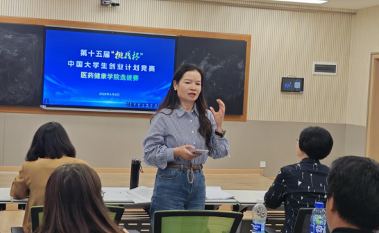 为深入推进创新创业教育,激发学生创新创业热情,夯实学生实践能力。4月9日下午4:30,第十五届“挑战杯”中国大学生创业计划竞赛医药健康学院院级选拔赛在XJ216教室顺利举办。学院院长唐红英、党总支书记雷敏、教学秘书罗晓兰、行政秘书曾子俊、辅导员廖云川等5人担任本次比赛评委。