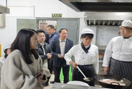 会后,在罗书记和姚院长的陪同下,财经教育学院一行参观了校园整体布局,重点走访了烹饪实训室,观摩学生上课实况,并前往董政霖大师工作室,看望正在备战技能大赛的学生。