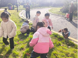 活动伊始,志愿者们便融入孩子们中间,引导他们步入户外的自然课堂。在洒满阳光的草坪上,孩子们在志愿者的鼓励下,兴致勃勃地俯身探寻,小心翼翼地拾起一片片形态各异、色彩斑斓的落叶。这些来自大自然的馈赠,在孩子们稚嫩的小手中,被赋予了特殊的意义——它们不仅是季节变换的见证,更被珍藏为毕业之际独一无二的记忆书签。志愿者们耐心讲解树叶的脉络与故事,在轻松愉快的氛围中,悄然播撒了探索自然、热爱生活的小小种子。