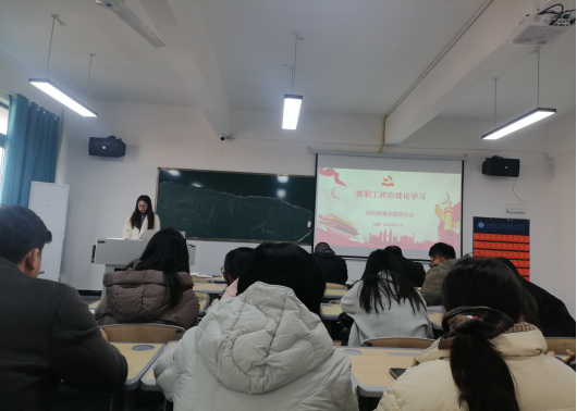 会议伊始,教师党员石明杰同志领学《中国共产党第二十届中央委员会第四次全体会议公报》,解读全会核心要义与“十五五”时期重大部署,并结合高职教育使命,阐释全会精神对职业教育发展的指引意义。教师党员张焱同志围绕《习近平谈治国理政》五卷著作的内在联系展开领学,梳理其一脉相承的理论体系与核心思想,强调将党的创新理论融入人才培养全过程。领学环节结束后,入党积极分子史江琳同志结合自身教学、育人工作实际,分享了学习体会与思想感悟。她表示,将把政治理论学习与岗位履职相结合,在课程教学、学生指导中践行立德树人根本任务,以实际行动向党组织靠拢。