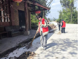 经过数小时的辛勤付出,原本散落着落叶与杂物的路面变得干净整洁,古色古香的南塔三清观周边环境焕然一新。