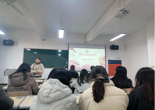 为深入学习贯彻习近平新时代中国特色社会主义思想,强化教职工思想政治引领,根据《中共重庆资源与环境保护职业学院委员会教职工政治理论学习实施意见》和学校工作安排,结合学院实际,财经教育学院于2025年9月24日在XS509举行2025年9月份教职工政治理论学习,会议由副院长谢元亭主持,全体教职工参加。