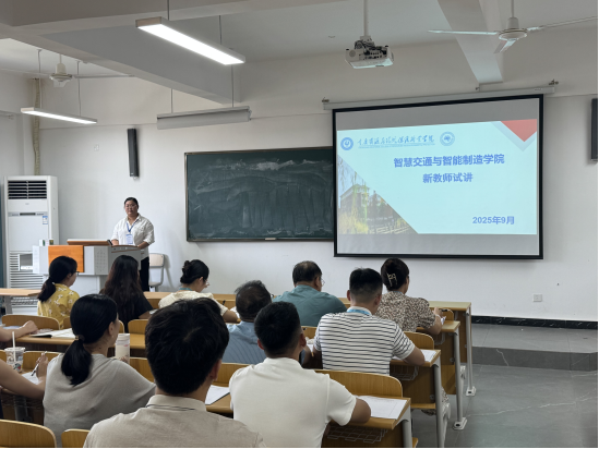 2025年9月2日下午,新学期开始,智慧交通与智能制造学院开展厅了新教师试讲活动。本次活动旨在加强对新教师教学能力的培养与评估,进一步提升教师的教学水平和能力。学院院长胡新和、党总支书记杨敏、各教研室主任及10名新进教师共同参与。