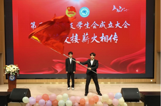 团旗交接,薪火相传。在全场师生的注视下,第四届团学组织干部代表刘杰同学郑重地将团旗递交至第五届团学组织干部代表杨智同学手中,鲜红的团旗在传递中象征着责任的接续、精神的传承。