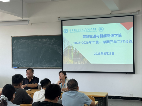 为确保新学期各项工作有序开展,8月28日下午智慧交通与智能制造学院召开2025年秋季开学准备工作会。学院院长胡新和、党总支书记杨敏及全体教职工参会。会议围绕新学期多项重点工作展开部署。学院领导首先介绍了本学期的整体工作方向,各教研室主任分别汇报了迎新准备、课程安排及教学资源配置情况。会议重点强调了新生接待、入学教育、学生管理及上课纪律等关键环节,要求全体教师以积极饱满的状态投入新学期的工作。此外