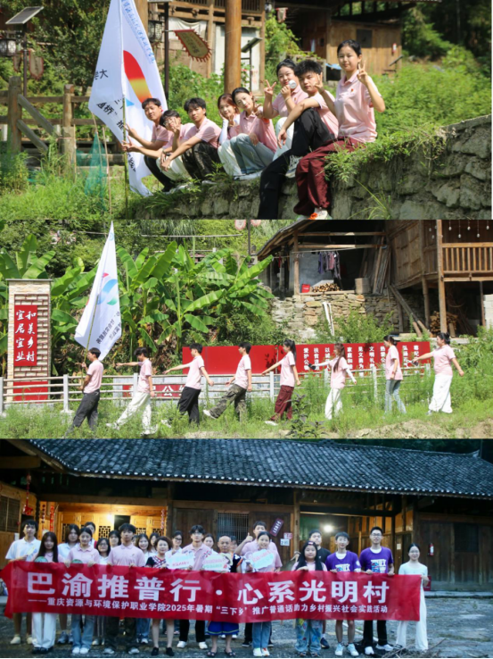 2025年7月9日至13日,重庆资源与环境保护职业学院“酉音通桥”推普实践团肩负青春使命,深入重庆市酉阳土家族苗族自治县麻旺镇光明村,开展为期五天的“三下乡”社会实践活动。团队以“推广国家通用语言文字,服务乡村振兴战略”为核心,将推普课堂搬进乡村教室,将调研脚步印在田间地头,将文化探寻融入非遗工坊,以实际行动架设起一座以语言为基、沟通城乡、助力发展的青春之桥,为酉阳这片热土注入了蓬勃的青春动能。